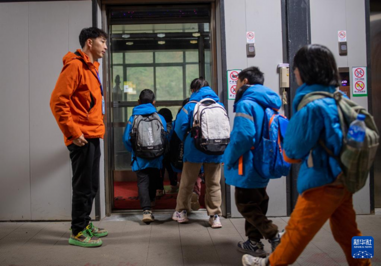 如今,当地的孩子先乘坐六七分钟景区观光车,转乘观光电梯垂直爬升268米,再换乘空中缆车爬升200余米,加上步行,半小时就能到学校。
