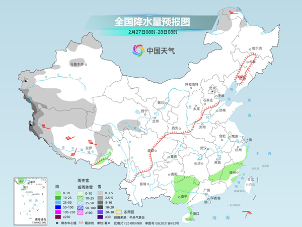 今明天,南方仍有较大范围降水,同时西藏等地部分地区还会有雨雪天气。后天,南方大部降水将短暂停歇。