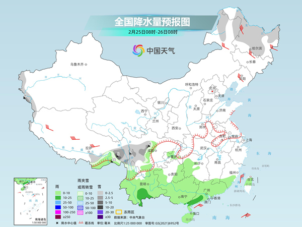 今明天(2月25日至26日),南方仍有较大范围降水。华南部分地区将现中雨,有利于缓和当地气象干旱,同时西藏等地部分地区还会有雨雪天气。后天,南方大部降水将短暂停歇。随着冷空气退却,南北方陆续开启大回暖,黄淮及其以南不少地方本月底最高气温将超20℃,江南多地有望入春。