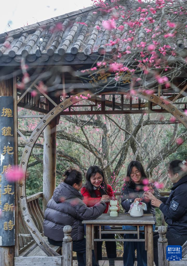 近期,浙江省诸暨市东白湖镇斯舜梅园梅花竞相绽放,当地举行“遇见梅好·寻找春天”春季乡村旅游主题活动,赏花、插花、工夫茶、书法雅集等活动拉开当地春季乡村旅游序幕。