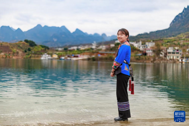 卢丹在镇宁布依族苗族自治县六马镇致富村的码头边留影(2025年2月20日摄)。