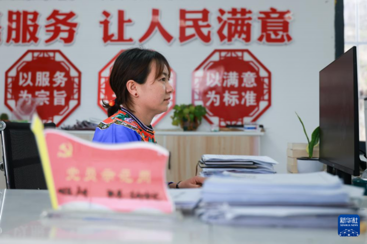 卢丹在镇宁布依族苗族自治县六马镇致富村村委会内工作(2025年2月20日摄)。