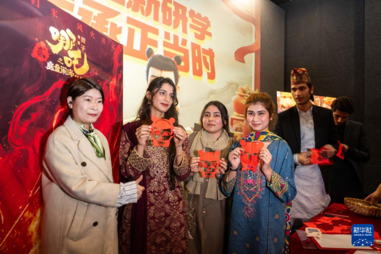 当日,湖南中医药大学以电影《哪吒之魔童闹海》为纽带,在长沙摩天轮国际影城开展“跟着‘哪吒’看中国”文化研学活动。留学生们观看电影后,了解电影片段中隐藏的中医药文化,体验冰糖葫芦制作,学习非遗剪纸技艺等,更直观地感受中国传统文化。