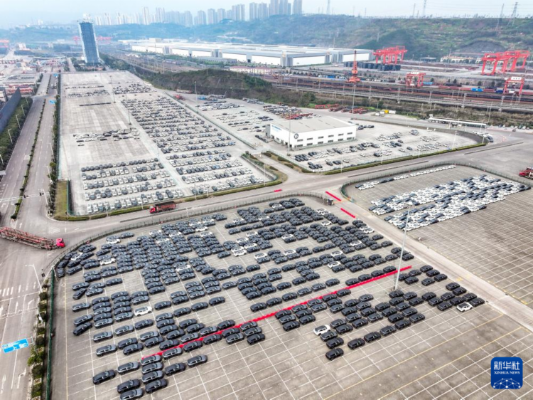 这是2月25日拍摄的重庆两江新区果园港停放的商品车(无人机照片)。