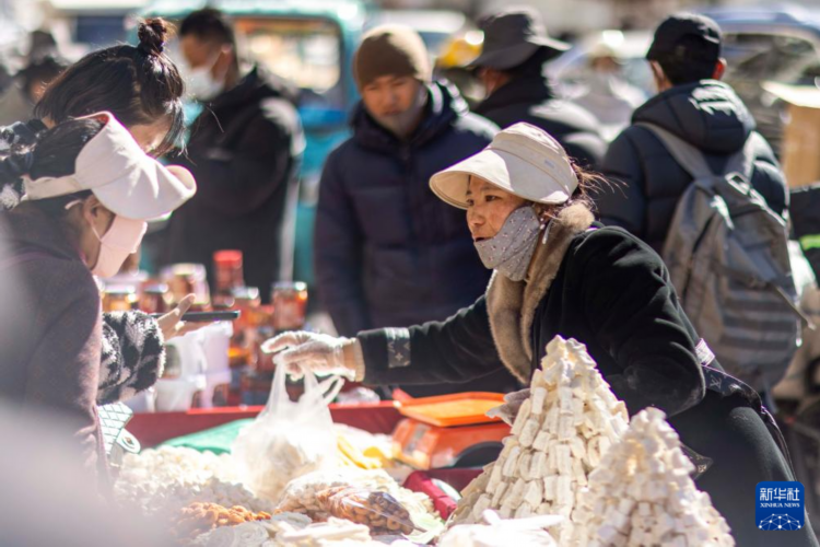 藏历新年临近,拉萨街头热闹非凡。人们采买各类传统年货,迎接藏历新年的到来。