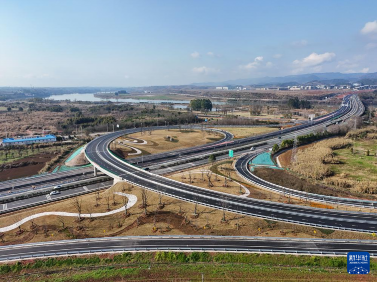 这是2月25日在四川省成都市金堂县拍摄的成南高速扩容工程连接淮州新城收费站的淮口互通(无人机照片)。