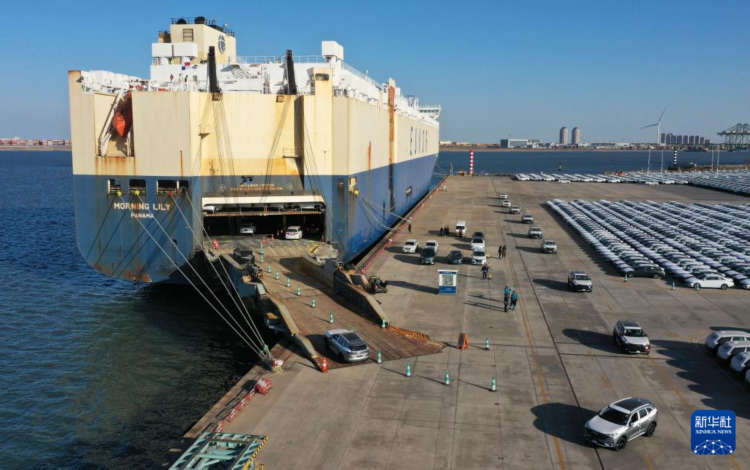 2月26日,装载着超4000辆国产自主品牌汽车的货轮驶离天津港环球滚装码头。