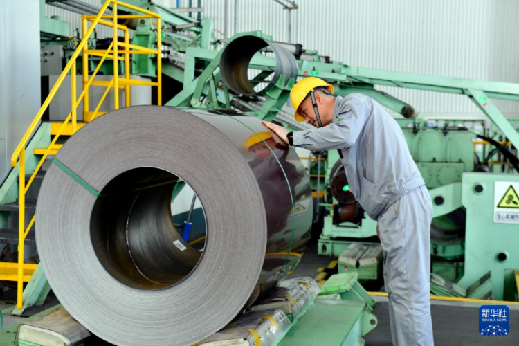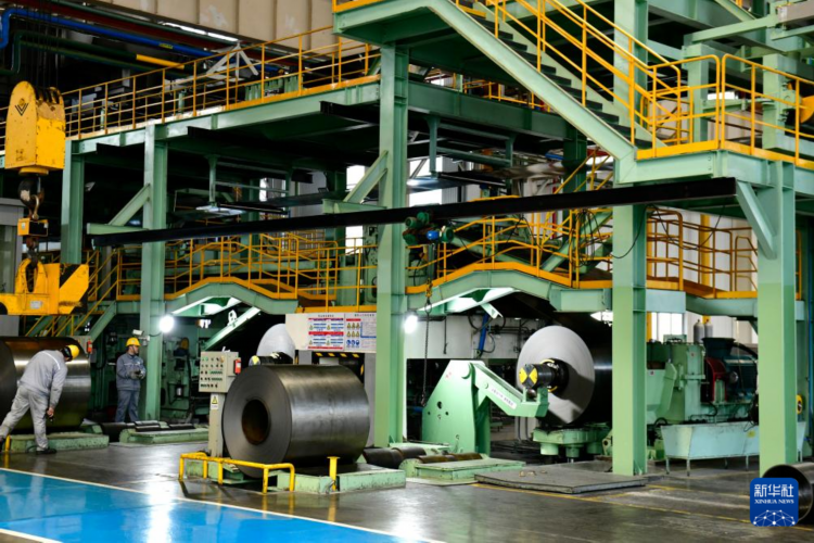 2月26日,在山东新美达科技材料有限公司,生产线在加工钢板。
