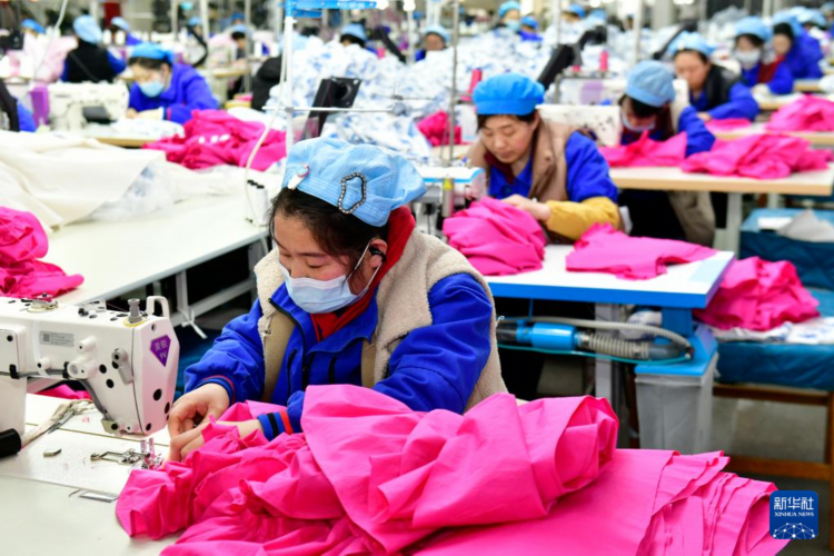2月25日,在愉悦家纺有限公司,工作人员在加工家纺产品。
