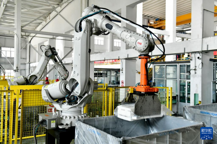 2月26日,在山东京博中聚新材料有限公司,工业机器人在分装丁基橡胶产品。