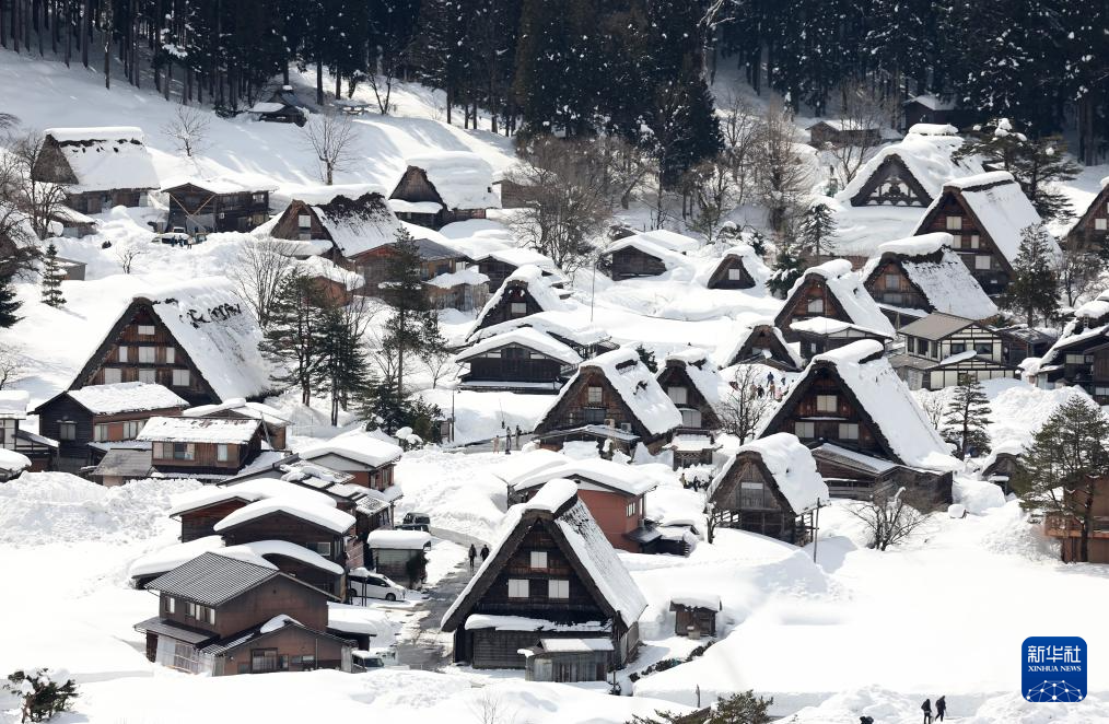 这是2月26日拍摄的日本岐阜县白川乡“合掌造”村落景色。