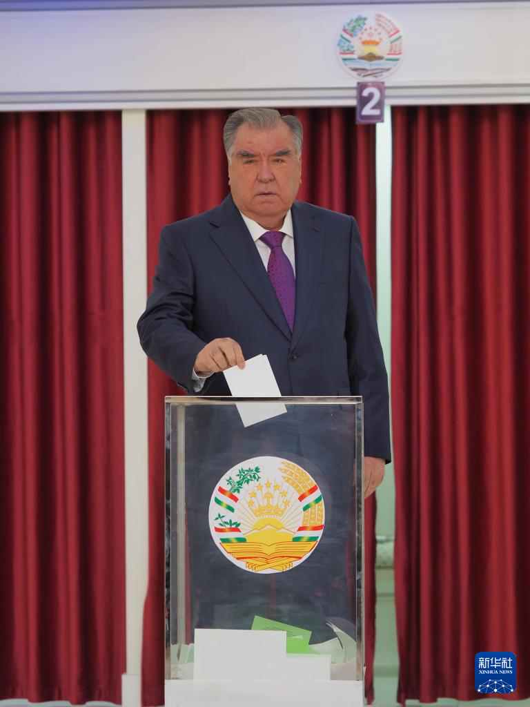 3月2日,塔吉克斯坦总统拉赫蒙在杜尚别参加议会下院选举投票。
