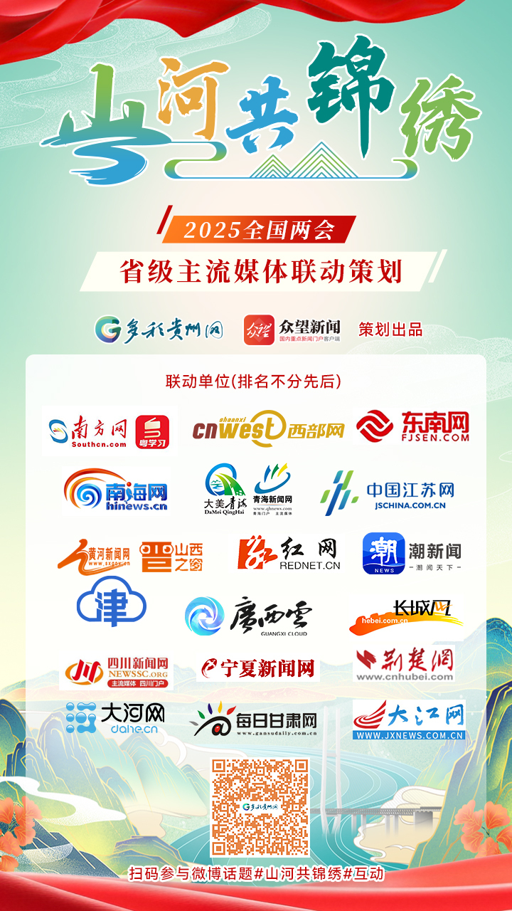 2025全国两会即将召开,从3月3日开始,多彩贵州网联合南方网、西部网、东南网、南海网、中国江苏网、青海新闻网、黄河新闻网、红网、潮新闻、津云、广西云、长城网、四川新闻网、宁夏新闻网、荆楚网、大河网、每日甘肃网、大江网共同推出“山河共锦绣”网络主题宣传活动。我们将沿着习近平总书记的足迹,穿越山河绵延,展现中国式现代化建设进程中物质文明和精神文明和谐发展的锦绣画卷。