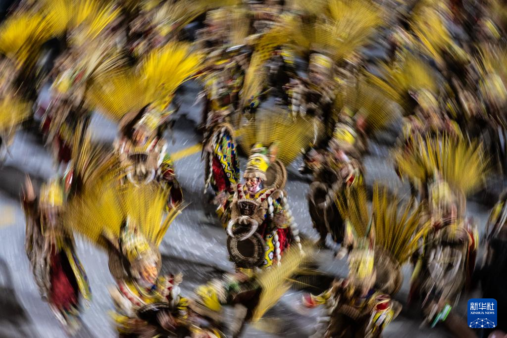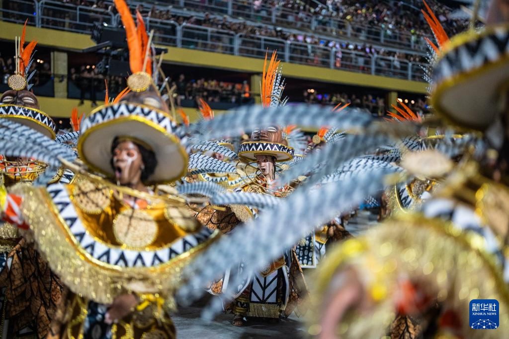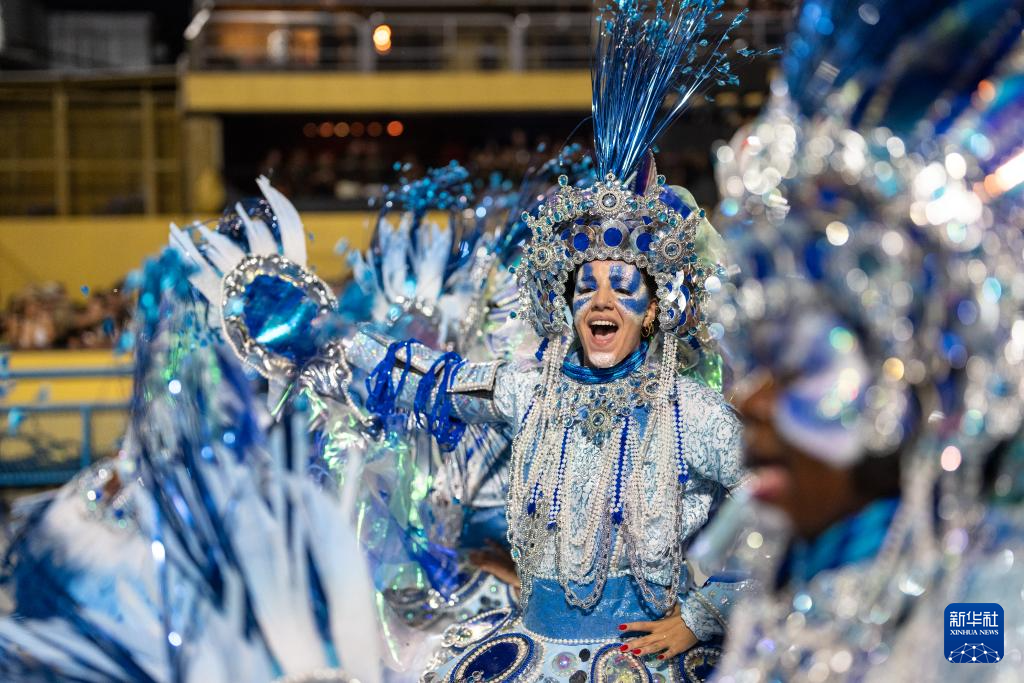3月2日晚,在巴西里约热内卢的桑巴大道,桑巴舞校的演员参加狂欢节游行。 2025年巴西里约热内卢狂欢节特级组舞校竞赛于3月2日起在桑巴大道举行。竞赛期间,12所顶级桑巴舞校同台竞技,争夺年度桑巴冠军。 新华社记者 王天聪 摄