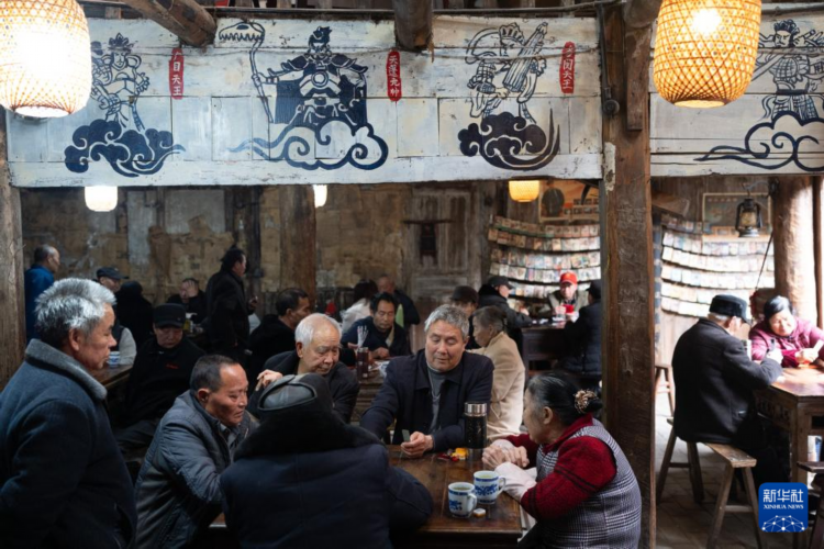 3月2日,顾客在宜宾市泥溪镇坤隆昌茶馆里喝茶休闲。