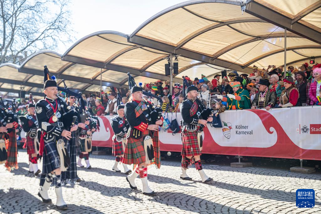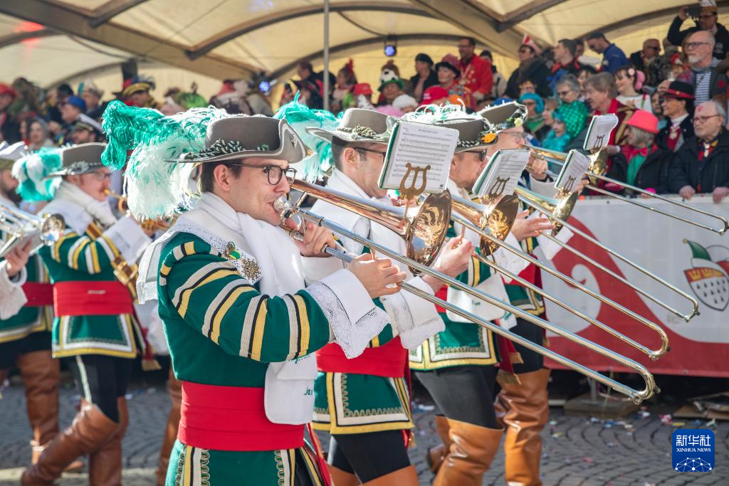 3月3日,乐队在德国科隆参加“玫瑰星期一”大游行。 当天,德国科隆举办“玫瑰星期一”大游行,掀起科隆狂欢节的高潮。科隆狂欢节是德国规模最大的狂欢节。 新华社记者 张帆 摄