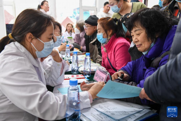 3月4日,在吉林省吉林市田园社区,吉林市医疗志愿者协会志愿者为居民检查身体。