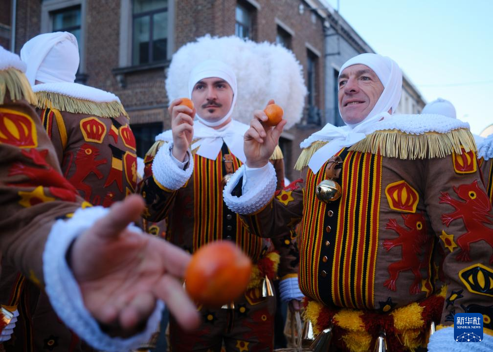 当日,比利时班什狂欢节迎来“血橙盛典”,装扮成“憨人”“水手”“农夫”“小丑”等形象的当地居民把代表幸运的血橙抛向人群中,将节日气氛推至最高潮。