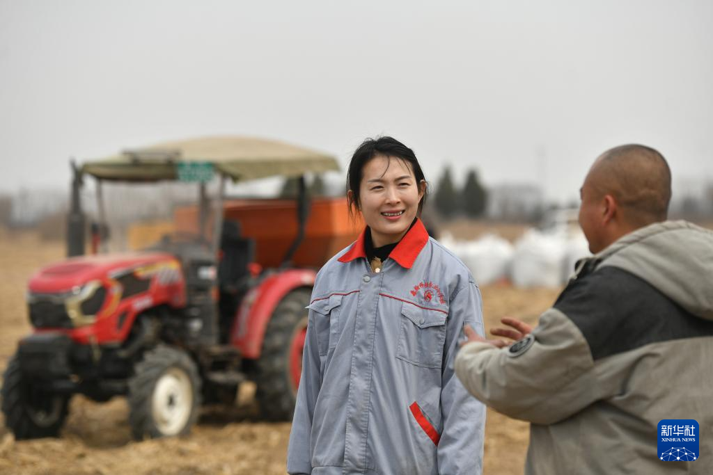 3月7日,张宸与农民交流,了解农机使用情况。