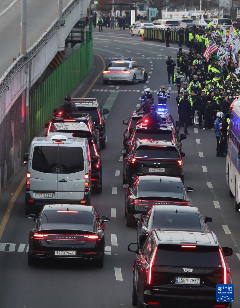 韩国总统尹锡悦8日下午获释离开首尔拘留所,乘坐警护车辆回到汉南洞总统官邸。