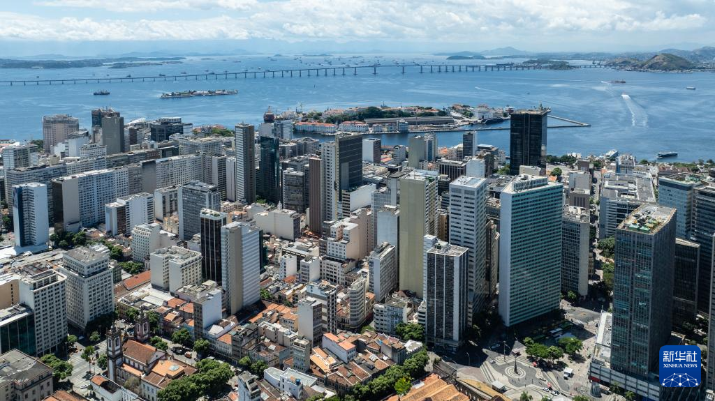 这是3月7日在巴西里约热内卢拍摄的市中心商业区和瓜纳巴拉湾(无人机照片)。