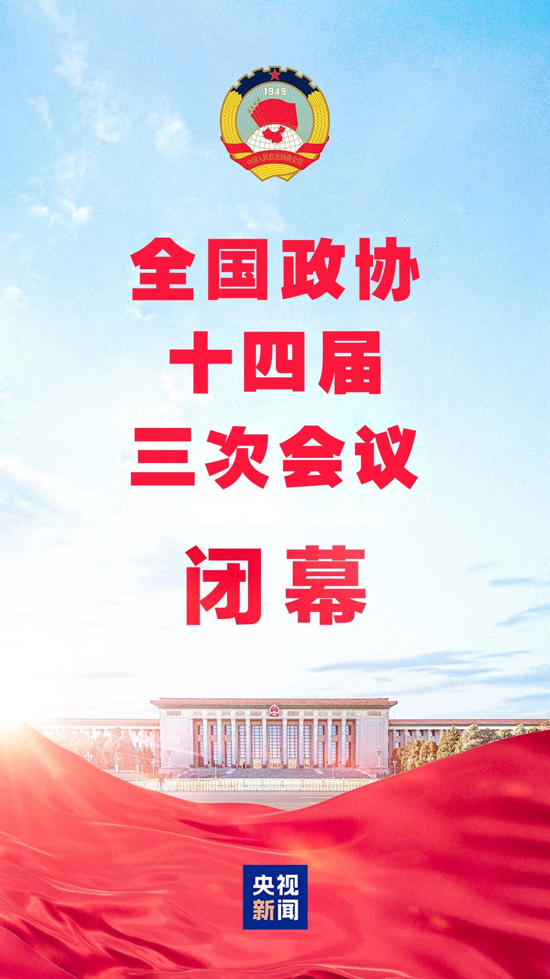 中国人民政治协商会议第十四届全国委员会第三次会议在圆满完成各项议程后闭幕。