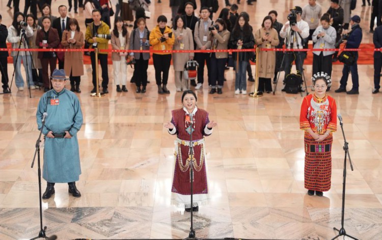 3月10日,全国政协十四届三次会议第三场“委员通道”集体采访活动在北京人民大会堂举行。