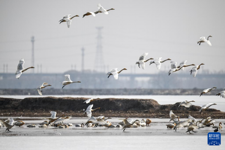 随着天气回暖,大批候鸟飞抵内蒙古呼和浩特市土默特左旗海流水库。候鸟时而休憩觅食,时而展翅飞舞,给当地带来勃勃生机。