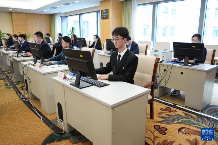 3月9日,十四届全国人大三次会议秘书处工作人员在认真工作。