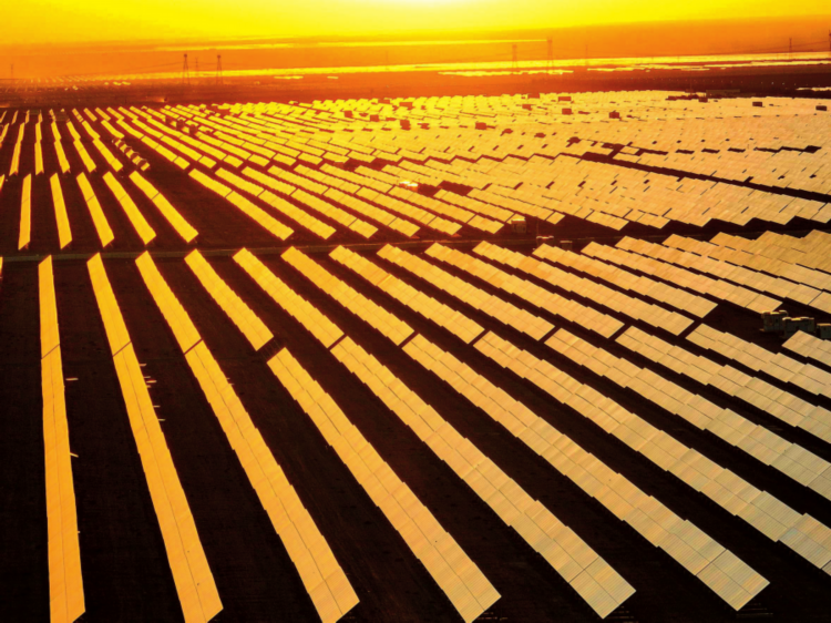 夕阳映照下的新疆哈密市石城子光伏产业园一角(2024年9月8日摄)。胡虎虎摄/本刊