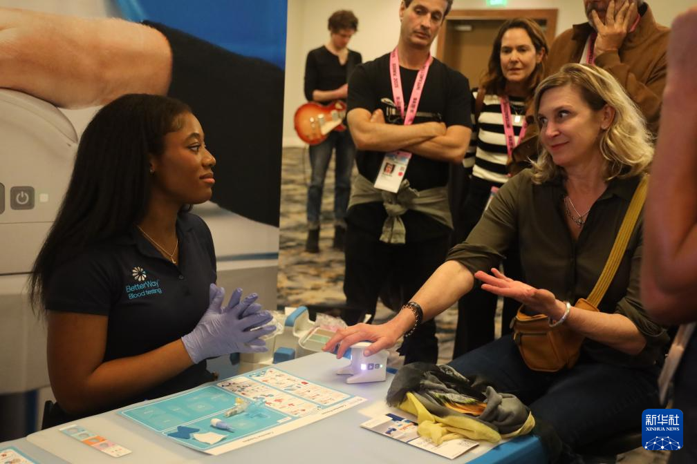 3月8日,在美国得克萨斯州奥斯汀举行的“西南偏南”大会和艺术节创新奖入围作品展示会上,参观者体验一种指尖采血检测产品。 美国“西南偏南”大会和艺术节8日举办2025年度创新奖入围作品展示会。今年共有55个项目和产品入围,角逐11个类别奖项。科技在现实中各领域的创新应用让人感到惊喜。 新华社记者 徐剑梅 摄