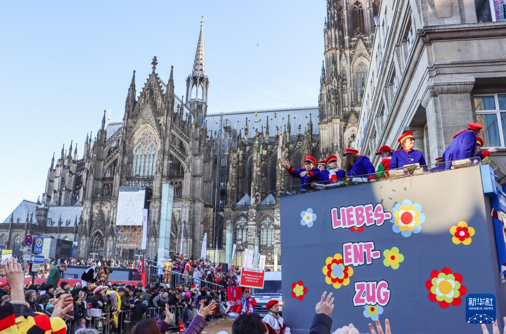 科隆狂欢节:“玫瑰星期一”大游行 3月3日,在德国科隆,“玫瑰星期一”大游行的参加者在花车上向观众抛撒糖果。 当天,德国科隆举办“玫瑰星期一”大游行,掀起科隆狂欢节的高潮。科隆狂欢节是德国规模最大的狂欢节。 新华社记者 张帆 摄