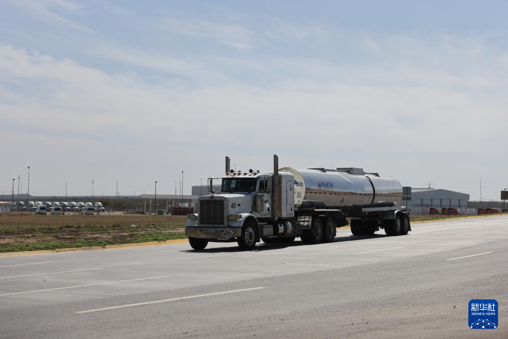 2月15日,在墨西哥新莱昂州哥伦比亚镇,货车在墨美边境附近的公路上行驶。