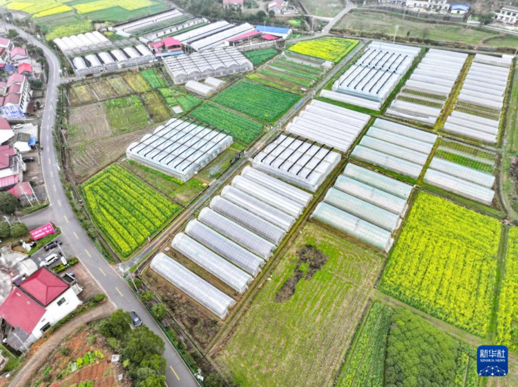 这是3月12日在湖南省浏阳市葛家镇拍摄的鸡肠子辣椒产业示范基地(无人机照片)。