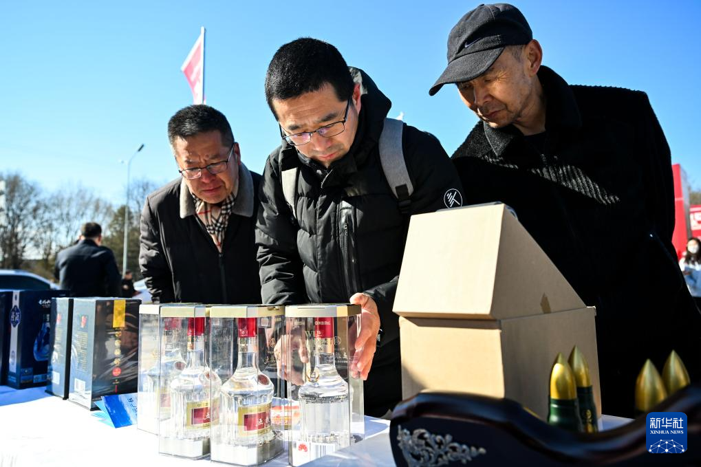 3月15日,在内蒙古博物院宝鼎广场,市民在观察真伪商品的区别。