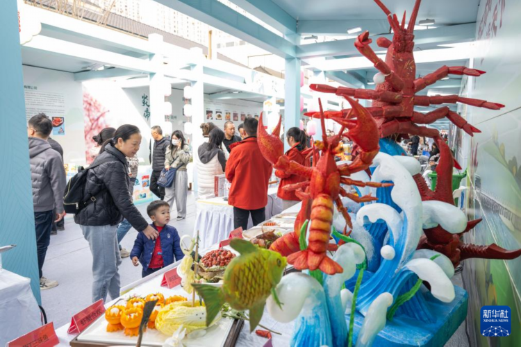 3月17日,消费者在2025年“中华美食荟”湖北潜江摊位参观。