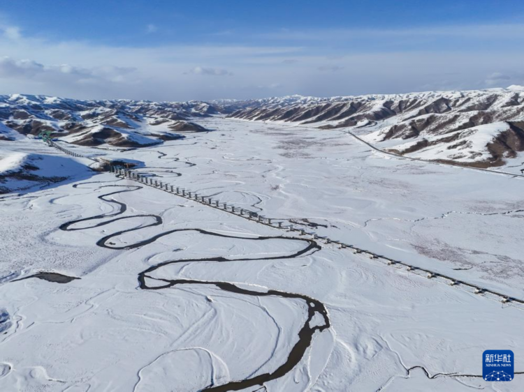 3月17日拍摄的在建的西宁至成都铁路(无人机照片)。