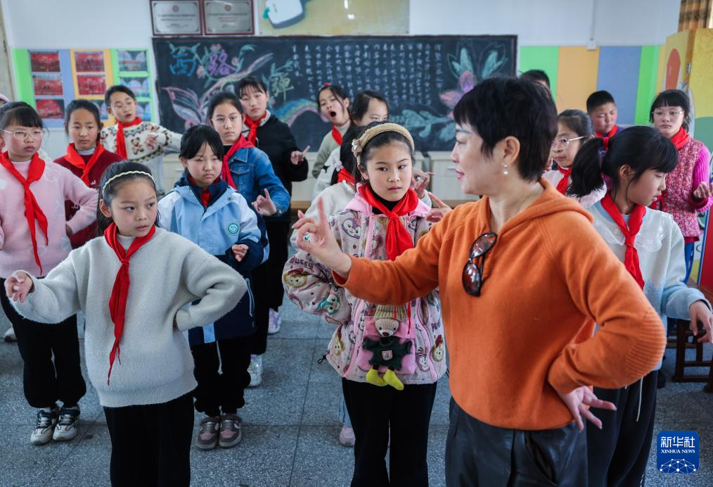 3月18日,东和乡十里坪村文化特派员卓秋萍在东和乡小学西路乱弹传承特色班给学生上课。