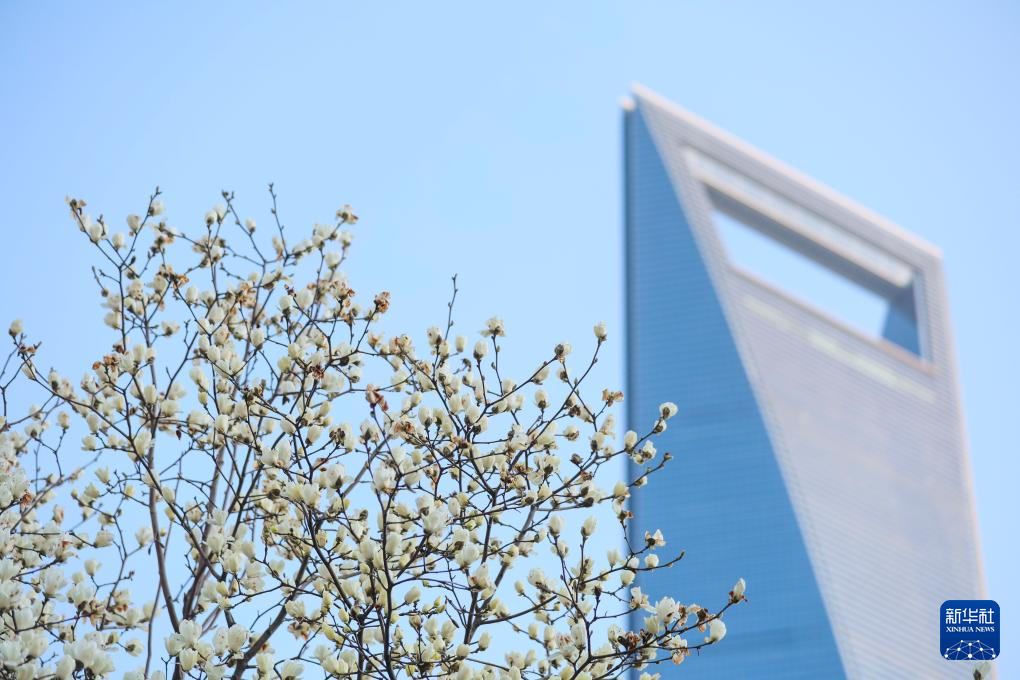 3月18日在上海市陆家嘴中心绿地拍摄的白玉兰。