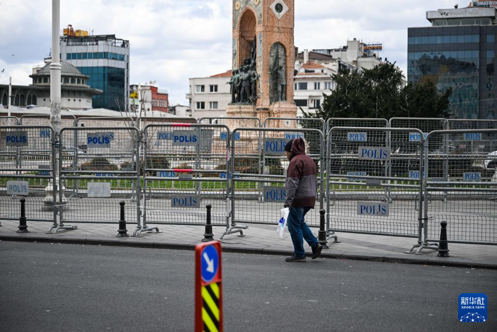 这是3月19日在土耳其伊斯坦布尔拍摄的被封闭的塔克西姆广场。