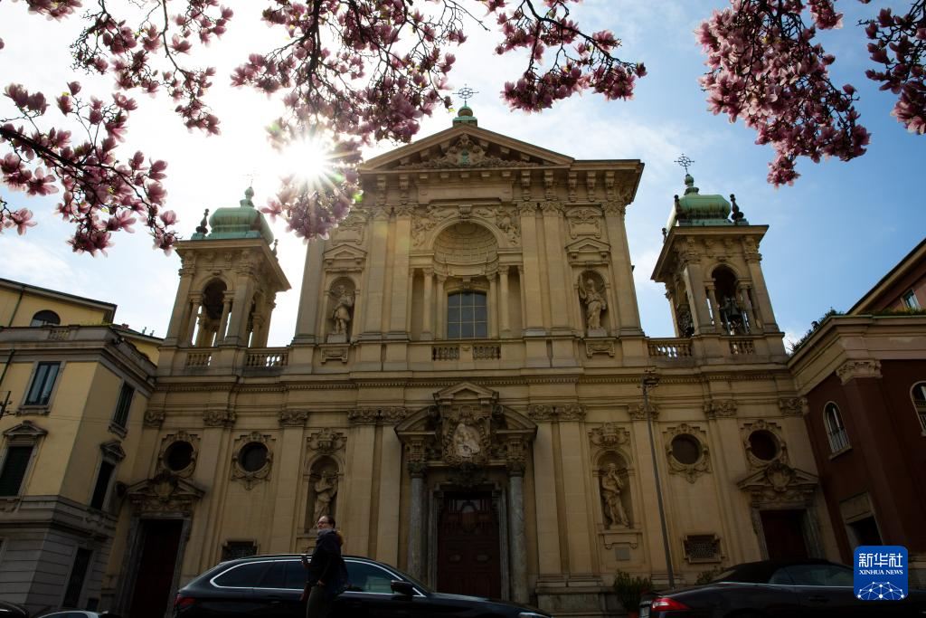 这是3月18日在意大利米兰街头拍摄的玉兰花。 早春时节,意大利米兰街头春花绽放,游人如织。 新华社记者 李京 摄