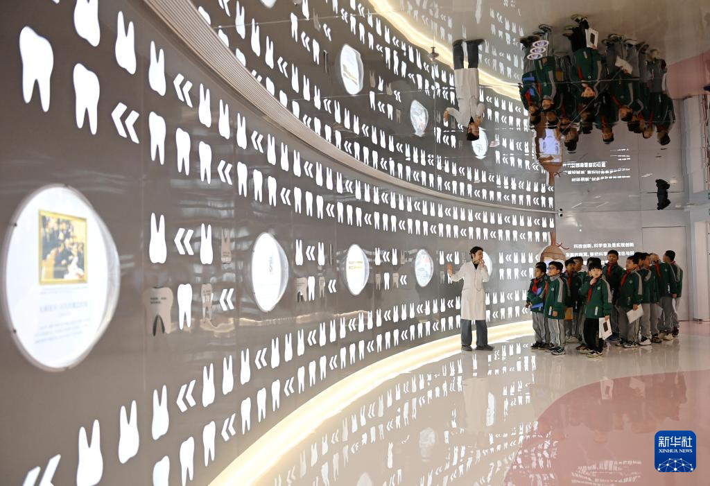 3月20日,陕西省西安市新城区通济坊小学的学生在西安交通大学口腔医院口腔科普教育基地了解口腔健康知识。