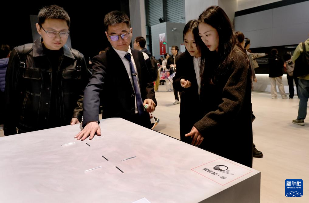 3月20日,参观者在一个智能无面板电磁灶产品前驻足观看。