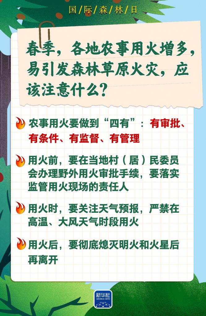 “草木植成,国之富也。”引发森林草原火灾的原因有哪些?春游踏青、野餐时如何拧紧防火这根弦?野外遭遇山火,怎样科学应对、逃生避险?对于你我关心的这些问题,3月21日国际森林日,应急管理部发布了森林草原防灭火安全知识要点。让我们一起,守护好我们的森林家园。