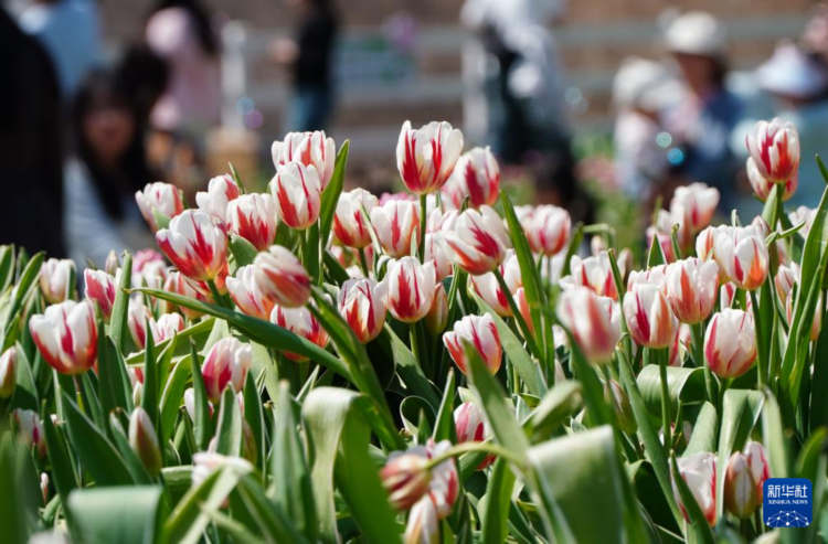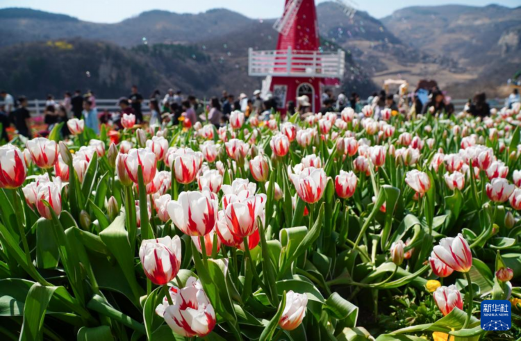 近日,山东省淄博市博山区红叶柿岩景区的郁金香陆续盛开,吸引游客前来赏花踏春。