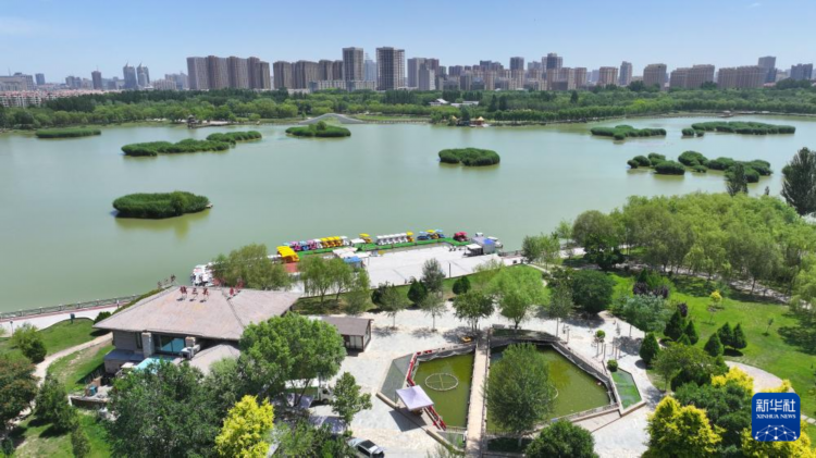 这是2024年6月11日拍摄的银川市宝湖国家城市湿地公园(无人机照片)。