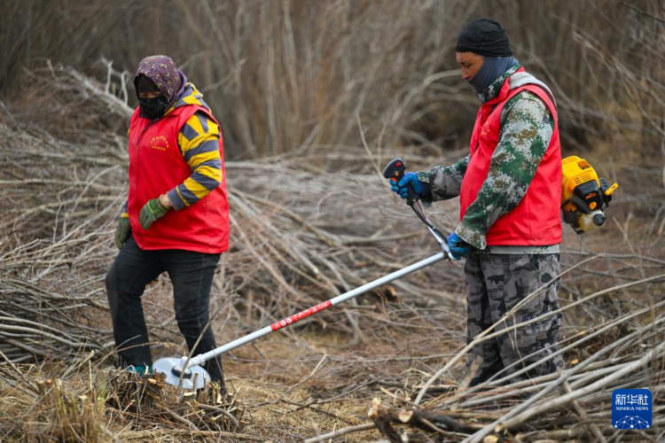 正值春季,在位于内蒙古锡林郭勒盟正镶白旗境内的浑善达克沙地中,当地农牧民利用割灌机对红柳进行平茬作业。科学平茬有助于红柳的再生长,强化其对浑善达克沙地生态的防风固沙和水土保持功能。平茬后的红柳枝条可以作为沙障的原材料,成为治沙“利器”。农牧民通过参与平茬、分拣、切割、捆扎红柳条获得劳动收入,实现“生态治沙、群众增收”的双赢局面。