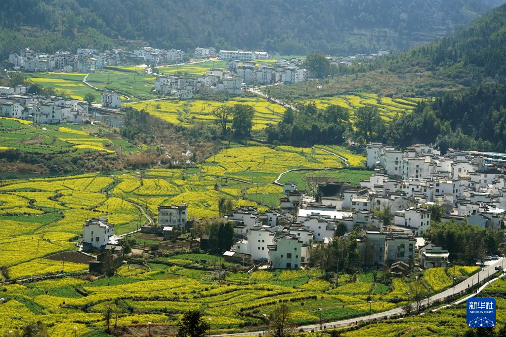 春到婺源 花海如画 这是江西省婺源县江岭景区的油菜花田(3月19日摄)。 近日,随着气温回暖,江西省婺源县12万亩油菜花竞相开放,多彩油菜花田与星罗棋布的徽派民居交相辉映,构成一幅绚丽的春日图画。 新华社记者 万象 摄