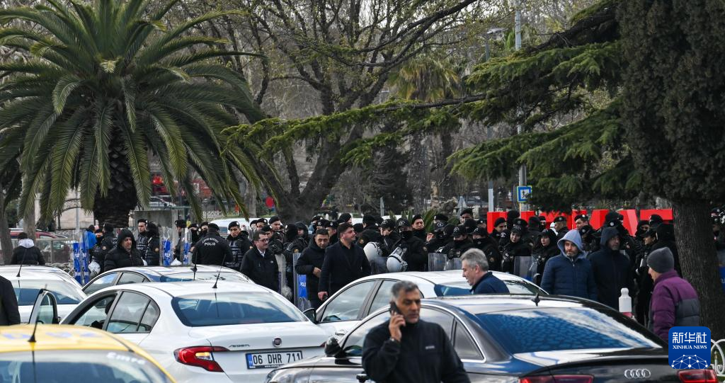3月19日,警察在土耳其伊斯坦布尔市政府外维持秩序。