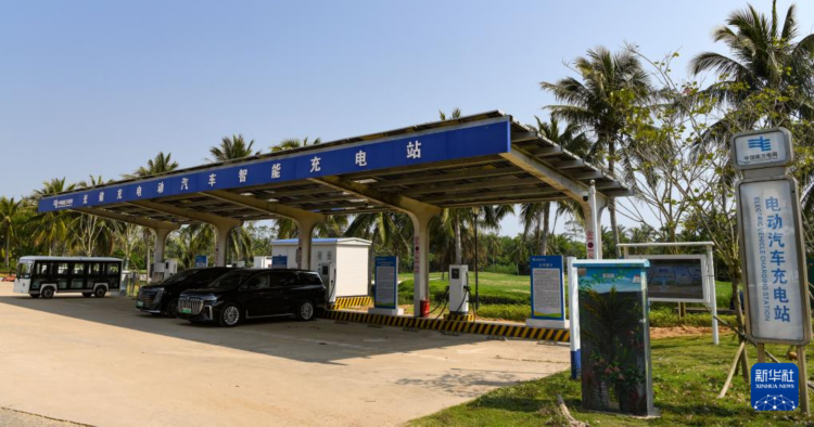这是3月25日拍摄的博鳌零碳示范区内的电动汽车充电站。